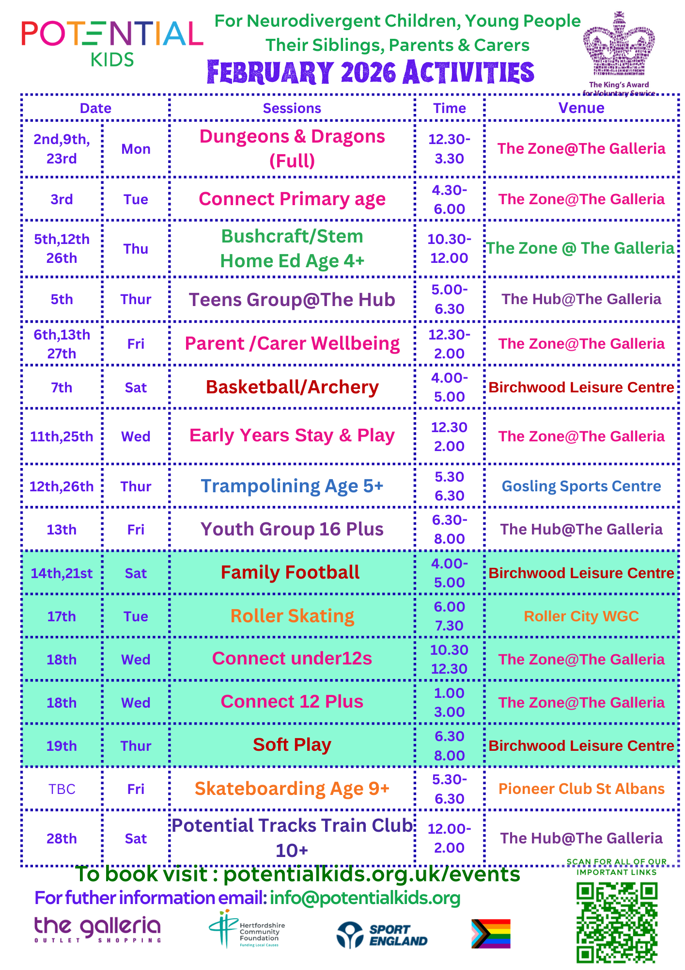 Potential Kids FebruaryActivites