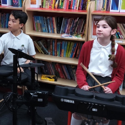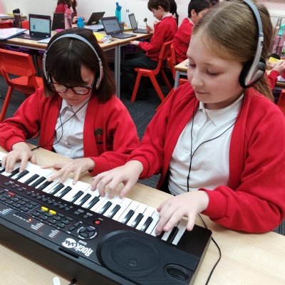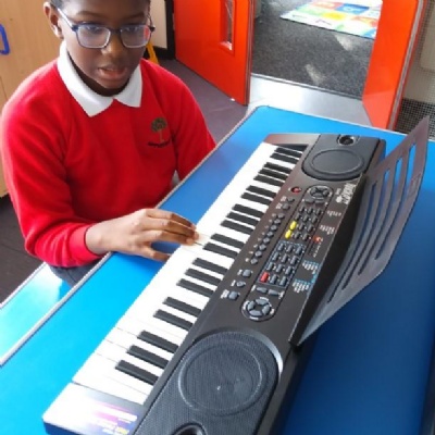 Our music curriculum, based on the CUSP curriculum, is ambitious and progressive, with a strong focus on vocabulary. It builds on previous learning, promoting a love of music and singing. It supports non-specialist teachers and is taught in a practical and enjoyable way, deliberately planned so that pupils revisit concepts, embedding knowledge over time. Children learn to appreciate different music forms, genres and composers and participate in a wide range of opportunities. They learn to play instruments, to perform and develop musical skills. The curriculum is designed to be accessible to all so that every child makes good progress. We believe that all pupils can achieve in music and, through their learning, will develop creatively, culturally and spiritually. Lessons are based on listening and appraisal activities, games, singing, playing instruments, composing, improvisation, music technology and performing.